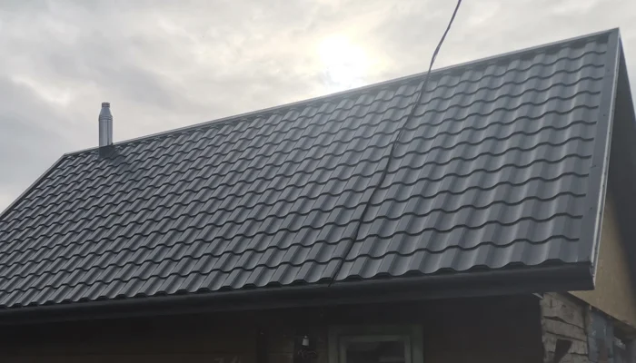Кровельный материал в покрытии «PE 0.45» на основе глянцевого полиэстра — это бюджетный вариант. Чаще всего его используют в качестве кровли дачных домов и жилых деревенских домов.